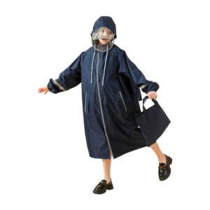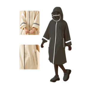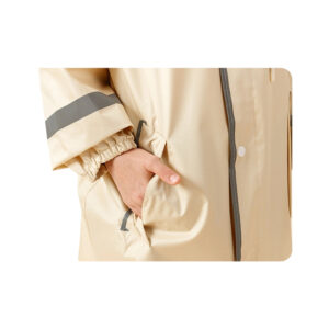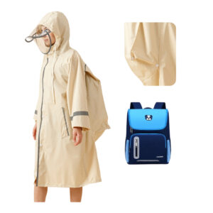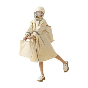 Tear-resistant poly pongee kids’ raincoat: premium waterproofing, roomy backpack-friendly fit, full-body high-visibility reflectors—night-safe, parent-approved.
