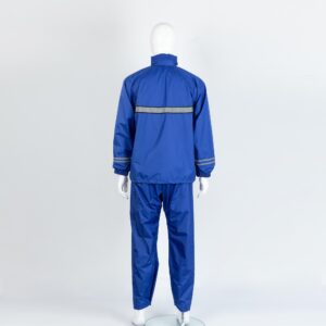 Polyester Pongee Adult Single Split Rain Suit.Breathable mesh lining, high-visibility reflective safety strips, and a secure dual button-and-zipper closure for rock-solid waterproofing.