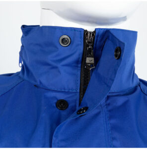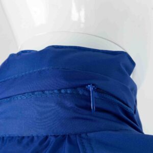 High neck design with button and zipper